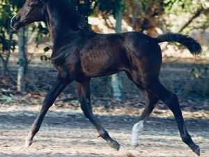 She is the first filly by new seasons sire ZESUAN, himself a tall, dark son of Triple Dressage World Champion SEZUAN x Head Stud book mare PC Sasperilla ( Salzburg - St Moritz - Rotspon)