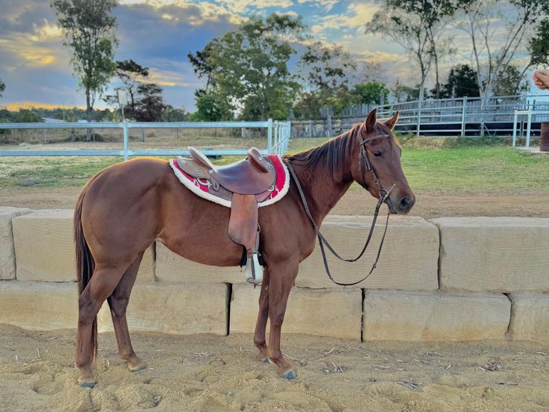 registered QH has recently finished being broken. Currently in full work and for sale at trainers. Nikki hasn't missed a step and has been nothing but easy to break with zero dirt, a very intelligent mind and willing attitude. Standing at 13.3hh however still growing. Both sire and Dam camdrafted successfully. Suitable for any discipline. Ridden videos available.