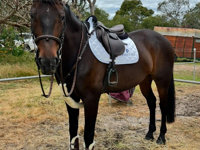 He has a lovely soft mouth and is more whoe than go. He is not hot or strong in any way. Like most horses he can look at silly objects on the ground like a pooper scooper or fallen objects ,so still requires a experienced rider to get the best out of him.