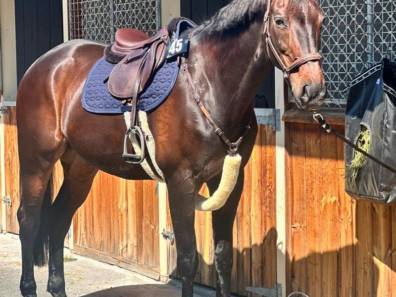 Will is a true gentleman. He is a stunning Bay ,WBXTB. My daughter has competed Will since she was 13 up to 125cm. His super versatile and adjust”s to any rider , teenagers all the way through to 60 year old”s .