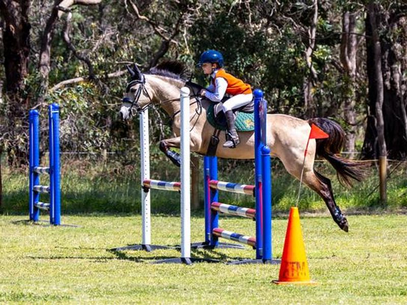 Dustyn rarely ever refuses or drops rails, and if for some strange reason he does, it is all on his rider. Dustyn is as honest and reliable as you can get in a pony. He has evented in the past up to 65cm as well as done up to novice dressage. His main forte is show jumping but this is only due to his rider choosing this discipline over dressage or eventing. With more training, Dustyn could be a great eventer.