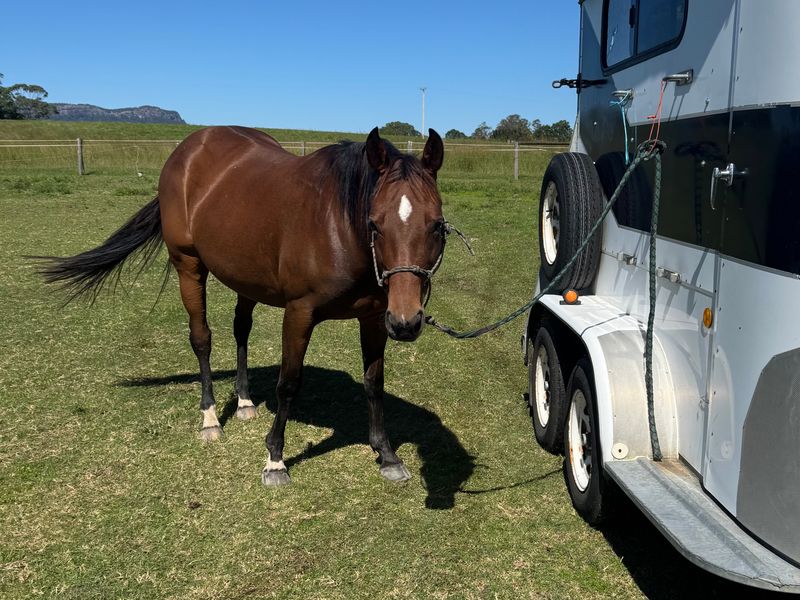 With her previous owner, she was kept on her with no other horses. With us she has lived in with our other horse. She is fine to load on the float by herself and take her for an outing. If she is walked or ridden away for her paddock mate she can become worried.