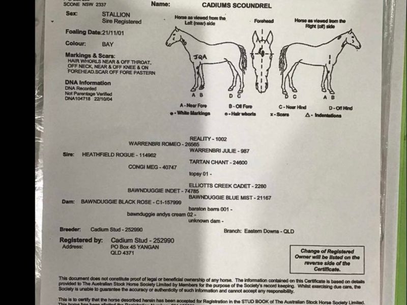 Sire: Cadiums Scoundrel SM-156832 (Stock Horse) (dec)