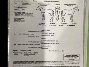 Can be registered. First cross stock horse. I have the signed breeding certificate but have not had the need to registered her.