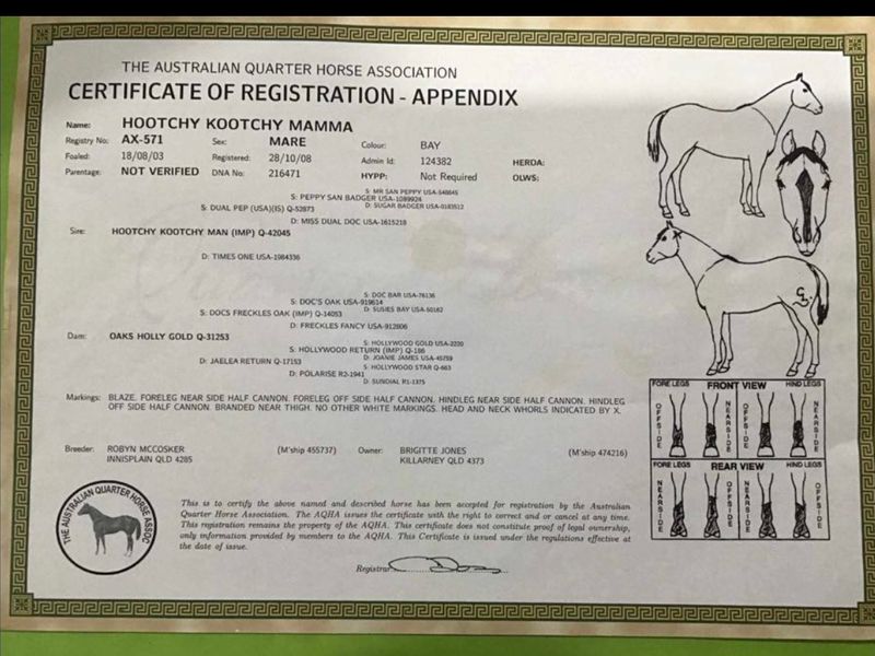 Dam: Hootchy Kootchy Mamma AX-571 (Quarter Horse)