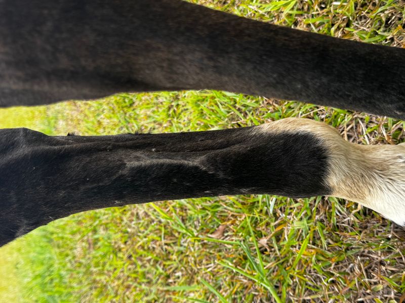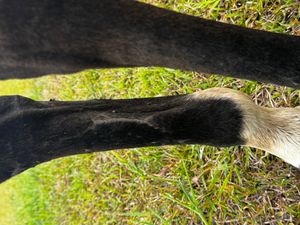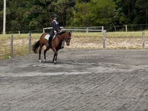 Whitney is good to catch, trim, float, rug etc. She is ridden 1-2 times a week and more in the school holidays. Whitney is working toward collecting more consistently during flat work. Occasionally she will do a small pigroot in canter. Whitney is a great doer and holds her weight. She has a scar on her back right leg which healed well and does not affect her.