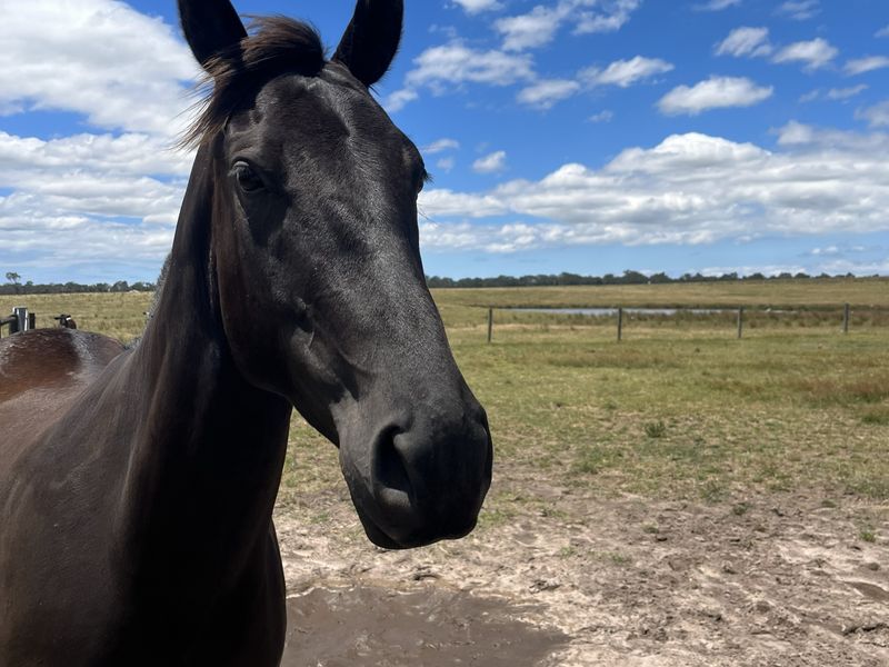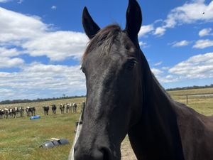 Storm was professionally broken and is a real character to have around. Due to FIFO work commitments, he hasn’t had consistent work and has been out of regular work for approximately a year. He is still green but has been lightly restarted — the basics are there and he is keen to learn.