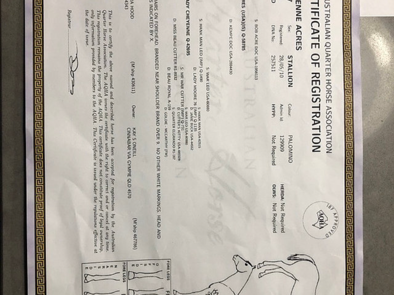 By Hank Man Leo & Bob Acre Doc (sire: Acres Destiny), out of an ASH polocrosse mare. Sire’s photo is included in the ad.