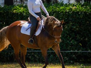 This mare is well-handled, athletic, and has a solid foundation. She would suit a confident and experienced rider who can continue her education and bring out her full potential.