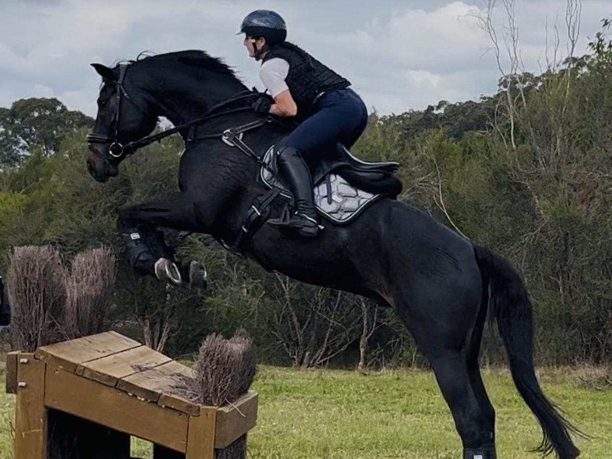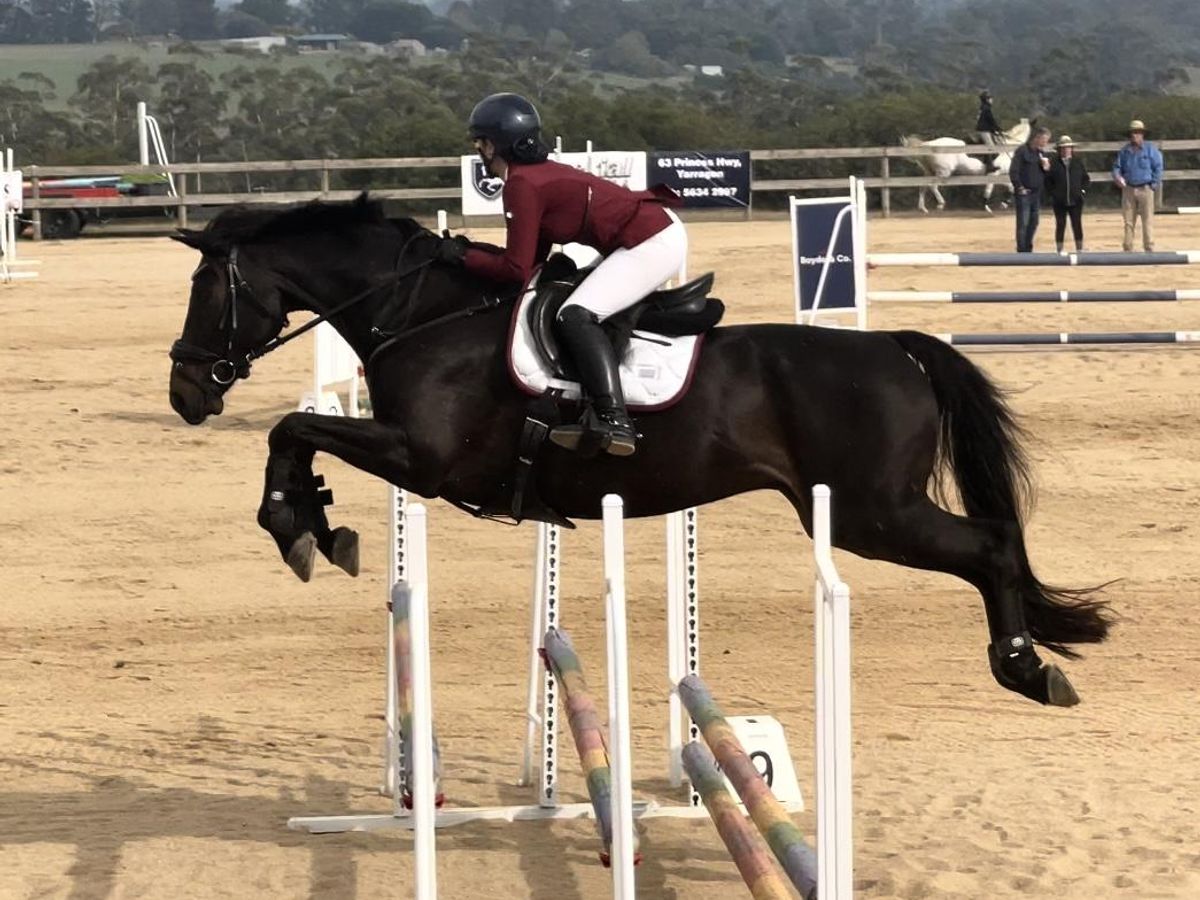 Volly is a 9yo, 16.1hh black/dark brown gelding by Oaks Volta out of LH Abbey.