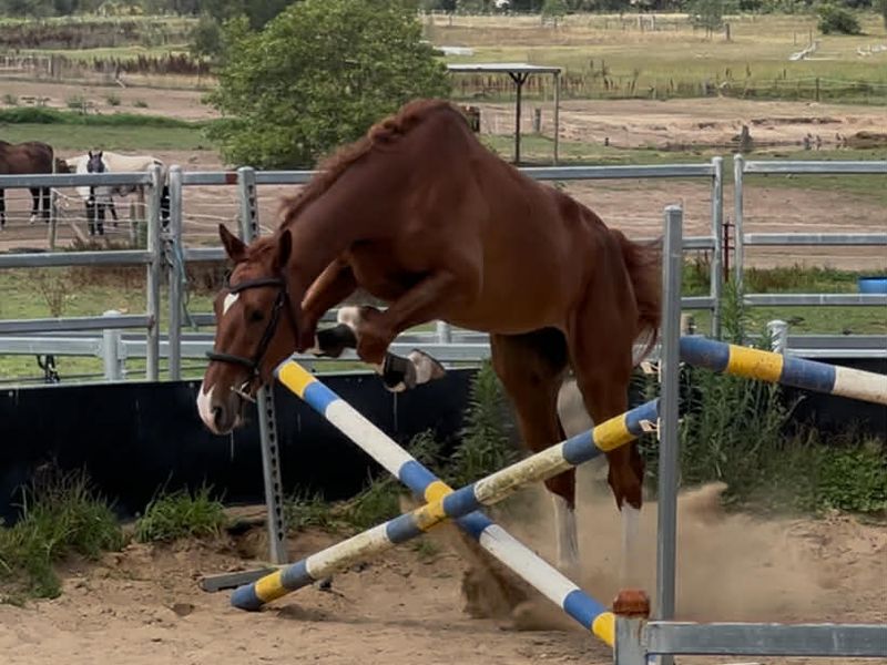DisciplinesSterntaler Dynamite is a 3 yo gelding currently 16.3 hh , This quality young horse has got a pedigree littered with 150/ 160 jumpers . Dyno is by Diablue PS ( 7 yo stallion currently jumping 140 - watch his youtube video in link below ) who has Diaron/ Diarado/ Diamant de Semilly on his sire side and Stakkariella / Stakkato and Chacco Blue on his dam side . Dyno's dam is Cartier SS. She is by Yalambi Carpino Z (160 Jumper) who has plenty of 160 jumpers in his pedigree as well. Carpino Z is also the sire of Billy Raymond's gelding Carprino , 3 times World cup Winner. Dyno is a very delightful, willing youngster that truly stands out in the crowd. He has got all the goods to be an exceptional showjumper at the top end of the sport . He has been broken in and is taking it all in his stride . Very easy too ride and super willing .He has a very uphill canter and a powerful stride. This young horse is destined for great things in the Jump arena. More videos are available on request .
