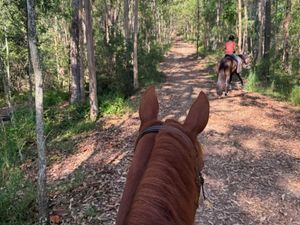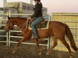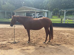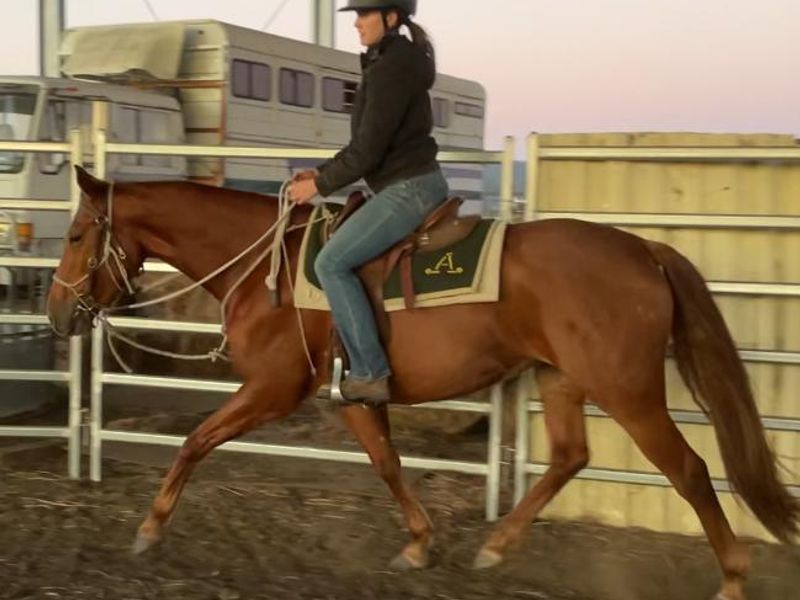She was broken in as a 3 year old and been lightly ridden on and off since due to time constraints. She is very athletic and shows great scope when free jumping.