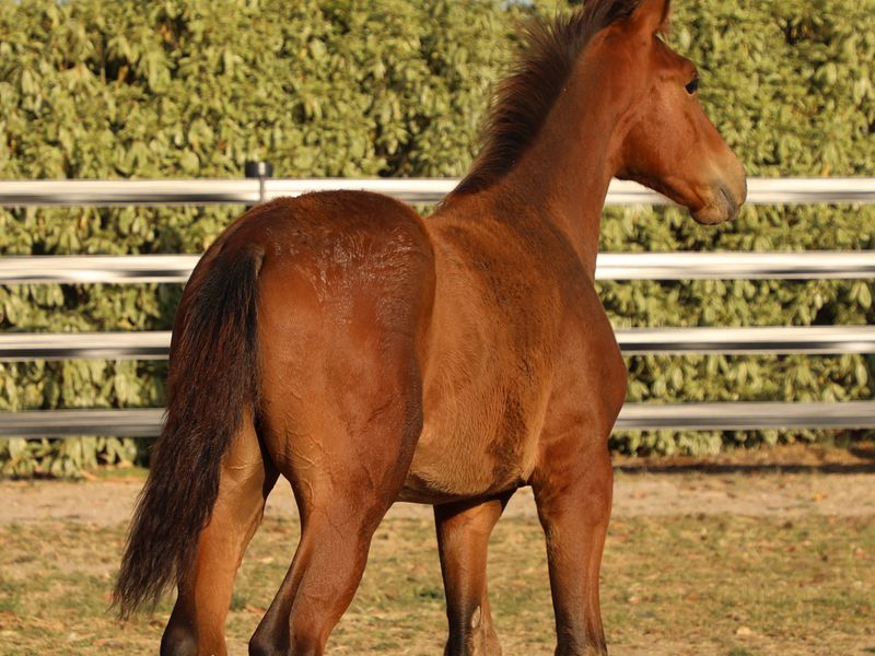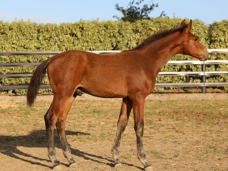 out of It's Speculation x Belcam Celestrial who’s out of Contango who was a legendary stallion, known for his success as both a performer and a sire. He began his career as a Grand Prix show jumper in the Netherlands before switching to dressage, where he won 33 Grand Prix classes and six championships, including Dressage at Devon, the USDF Region 1 Championships, and the CLBM Finals.