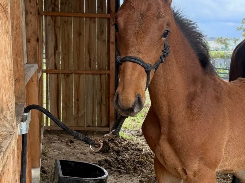 Bacardi is ready to go to his new home. He is halter trained, can wear rugs, fly masks, good for farrier and is easy to catch, he is able to be tied up and washed. Loves human affection and is not skittish. He is such a dream foal, so young and already so easy to do anything with. he seriously will make an amazing performance horse and best friend.