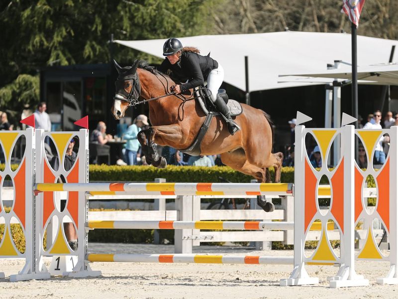 Ajax is well schooled on the flat with good changes. He can be ridden by every level in jump lessons - he is equally as happy to pop around 70cm with a young kid or to school up to 1.40m with a good rider.