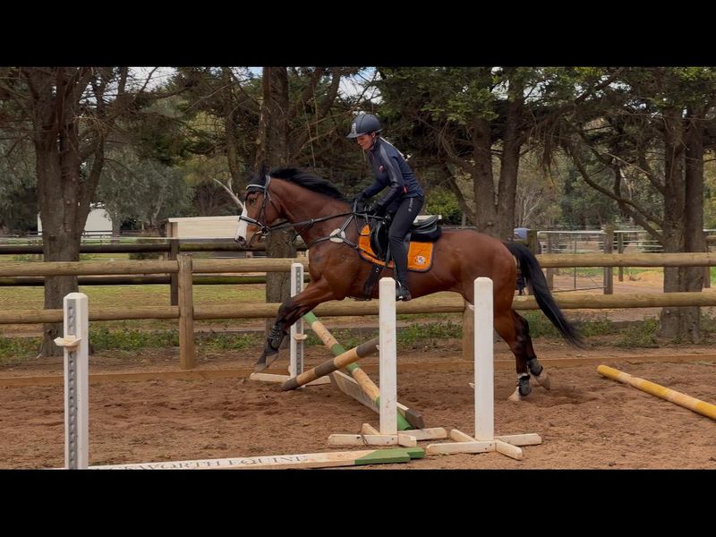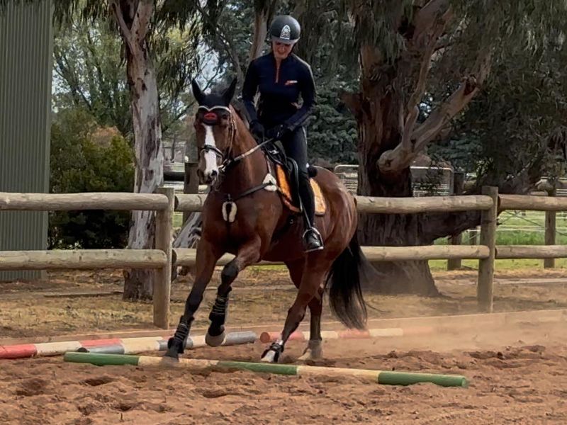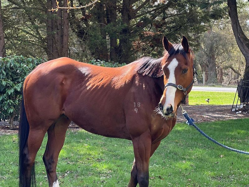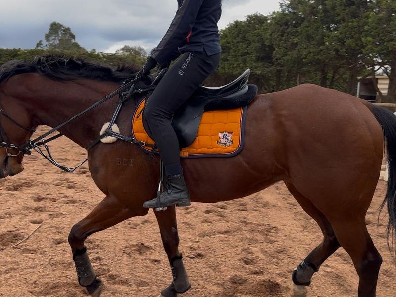 Lovely OTTB gelding , very nice and very kind nature boy, please no beginners for him as he deserves some experienced rider , very quiet to ride , no spook no dirt no rear no buck. Can be lazy if ride too long but usually quiet forward. Safe boy he can even jump. He spelled well for 4 months and now just comeback to work. He can be alone he can be with friends . Friendly to other horses and other animals like goats, cats, dogs. Loves his food not fussy at all. I didn’t measure him but roughly 16hh. He is 6yo and his race name is Tenace. Feels like he will suit some young confident teenager. He will follow you in the paddock, comes for hugs and want some love. Good to float, farrier, respect fencing and etc… Does eat carrots if you cut it small pieces. He was very easy to ride on the track. Sweet boy and I want him to find loving family. I have 4 horses at home and physically can’t keep him but I will help him to find his perfect home. He has a small dimple on his side. His mother stepped on him when he was a newborn. It doesn't bother him at all, as he raced without any problems.