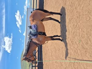 Has been retired 2 years, let down nicely had various experiences on and off property, not a novice ride as he has a huge movement, been to one jump comp handled it well, has good ground manners, easy to catch load shoe etc