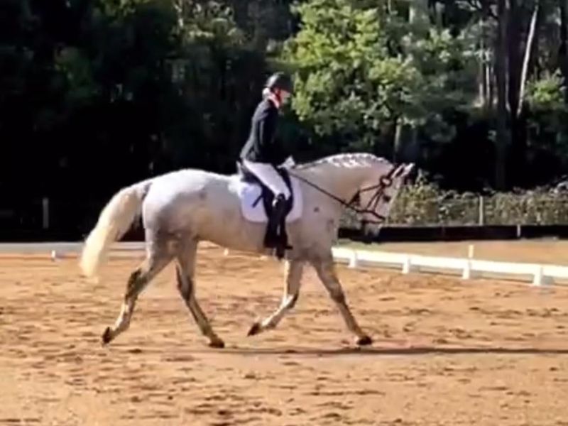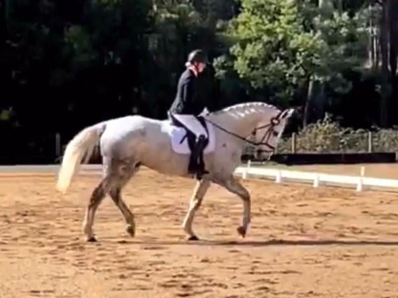 He has a super trot and Canter. He has a very active hind end and once fully developed he will score very well in the dressage phase as a straight dressage horse or Eventer. He is naturally up hill. Is schooling leg yield and shoulder in and is a lovely soft ride.