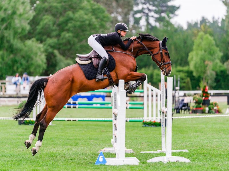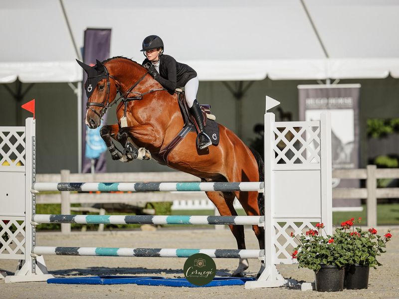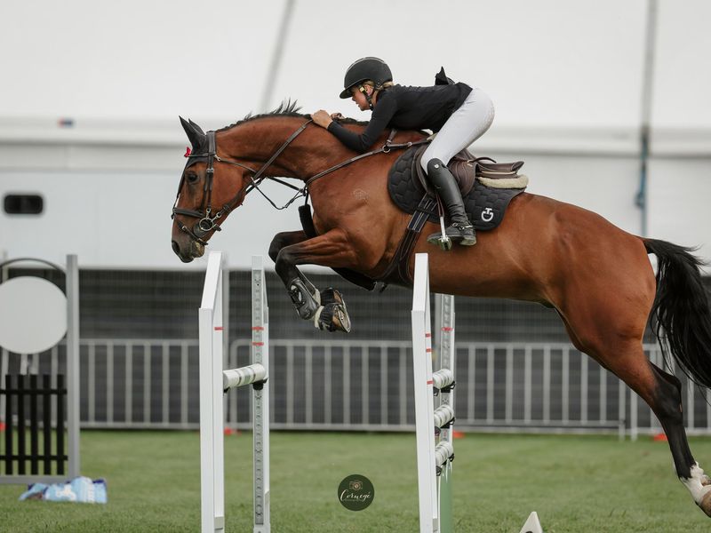 Cameron is a striking big horse that turns heads wherever he goes. He is a talented and powerful jumper, has previously competed to JR. He very rarely touches a rail. He is schooling 1.10-1.25 at home with ease. Easy to flatschool. Has gone XC schooling a handful of times and is very bold and brave at the 95/105cm height. Video's avalible* He has a lovely nature to him, a real fun character to have around. Cameron is for sale due to no fault of his own, rider is focusing on overseas travel and further education and needs to downsize the team. We all believe he has a bright and successful future ahead of him, so its a sad sale.