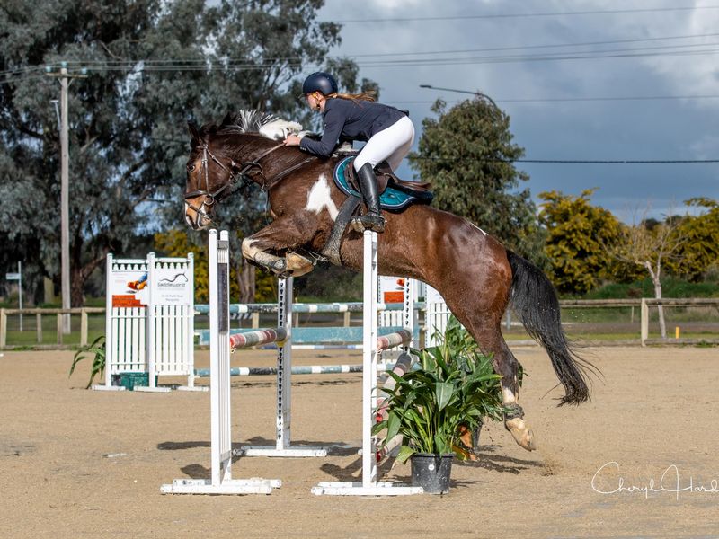 Cash is competing 110-115cm, training 125cm at home. He has plenty of scope, brave and is careful.