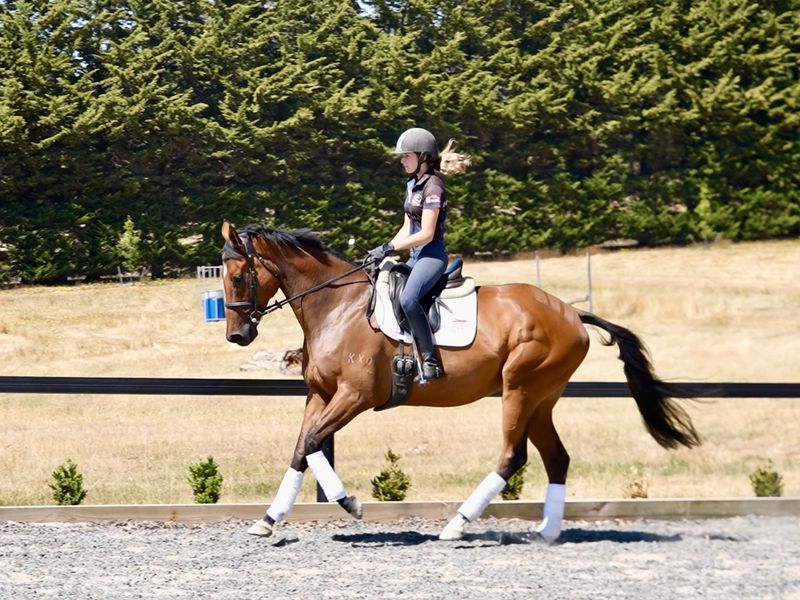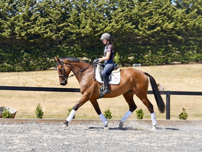 We have taken our time in producing him to let him grow into his body and is now ready to continue his career. Chase thrives off consistent work, he is an easy horse but can still be green on occasions. He isn’t suited to a beginner as he requires continued education as he grows.