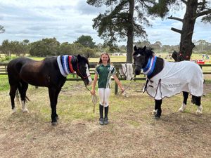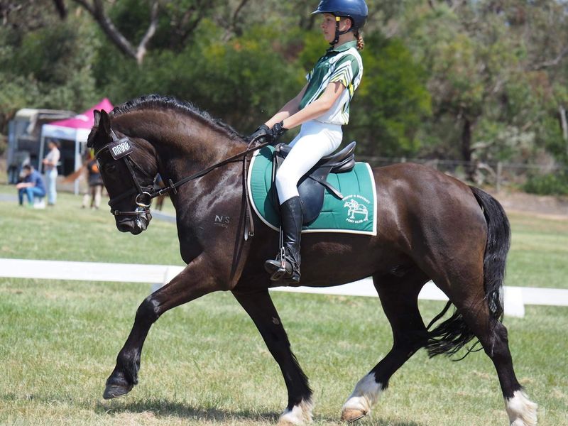 RegistrationsThe time has come to sell our amazing flying cob, due only to the fact his rider has outgrown him and is moving onto horses. Golly is a weapon of a pony with too many rugs and ribbons to mention. He has competed sj from 80cm to 105 with results and scope to go higher, medium dressage with results training advanced with previous owner, Golly has also stared some EA80 horse trials with placing in the big horse classes and training 1*, competed also in working Hunter at nationals, can be ridden bare back, has done loads of trail riding. Loves a game or two as well and is handy at sporting horse. Has been both a child and an adults pony with experienced and beginner riders on him. Golly is a supper pony and his next rider will be very lucky he is easy to keep, shoe and float, he will give anything a crack and always comes home with a ribbon. Lots of videos available on Facebook book @ Emma Lou. or phone Emma on 0438711001. This Pony is a once in a lifetime pony, and is the ultimate performance pony. He is one of the last out of his sire Pennant Flying Commit, Dam Burrowa black Rose. Golly will come with some of his rug wardrobe and is priced as a performance pony mid five figures but is negotiable to the right home.