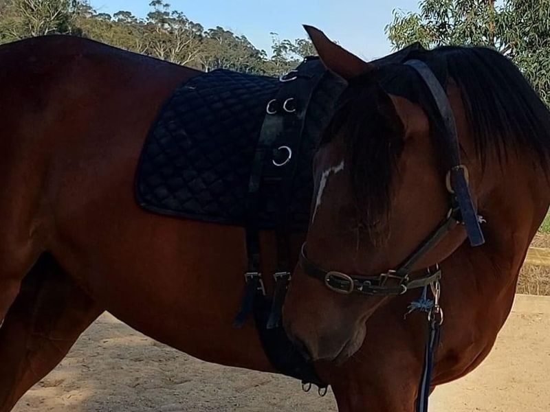 Great temperament, loves daily activity. Broken in 2023 with very few rides since, is green and needs education and miles.