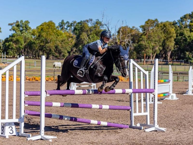Enzo has been in our family for 6 years and has taught both my sister and I the ropes of show jumping. He took me from 60cm on my 11.2hh school master, up to competitively show jumping 100cm/105cm and consistently placing and winning. Enzo brings home placings (mainly first place ribbons) after every single event- it is rare for him to not be in the winners circle. He is every child’s dream pony and you can’t find a better junior’s show jumper than this.