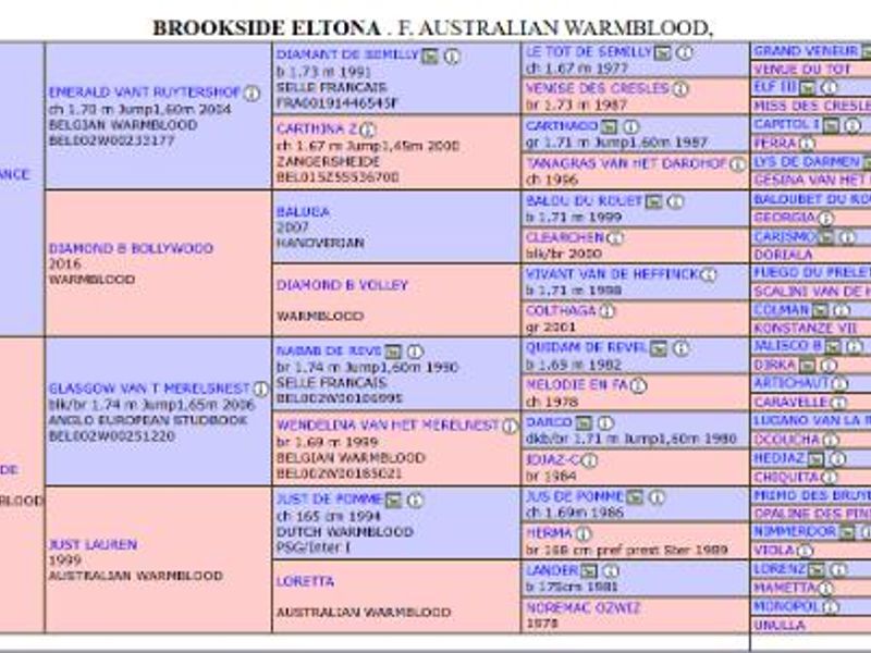 RegistrationsEsperance is showing an incredible free jump, and is bred in the purple- his sire is elite Grand Prix and Olympic jumper, Emerald van't Ruytershof, with successes far too many to list, and a proven sire of sires. His dam, Diamond B Bollywood, is a granddaughter of world cup mare Colthaga, the dam of the licensed and now exported stallion Caracas (Casall), now a stablemate of Emerald.