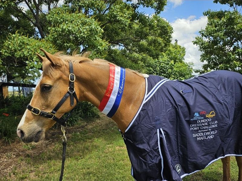 At both local Dressage competitions he has attended he has bought home a rug and been Champion Pony or highest scoring Pony, even holding his own in open classes placing ahead of some very fancy young warmbloods, with scores between 70% & 75%.