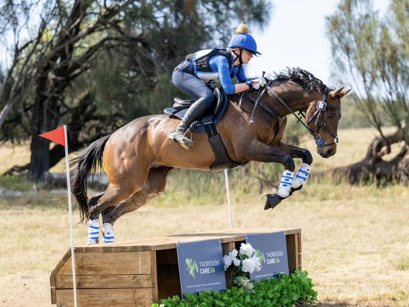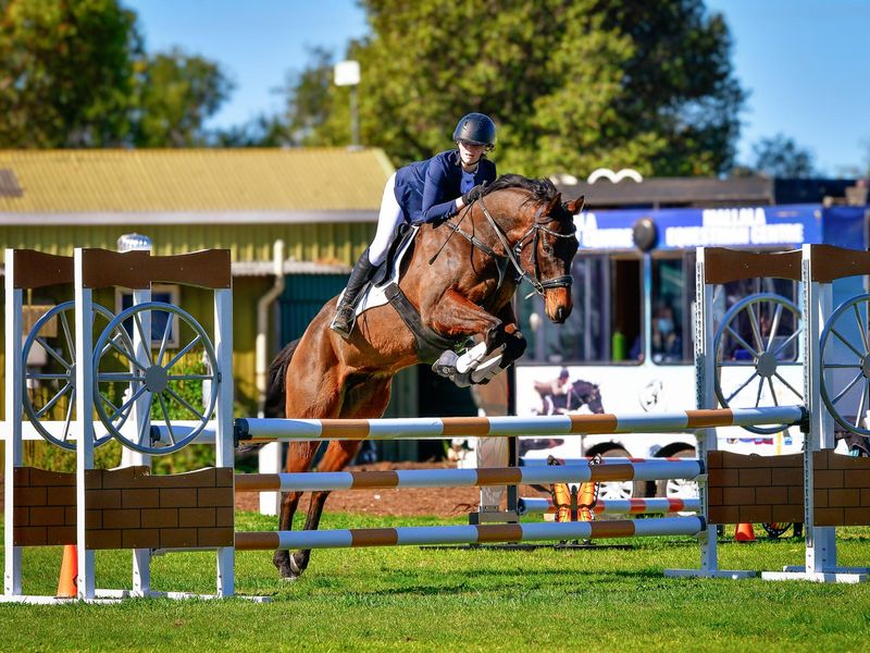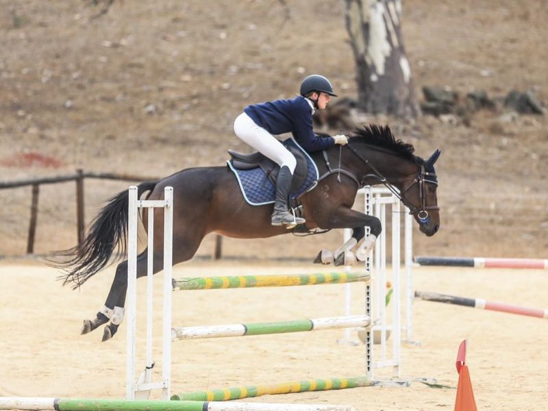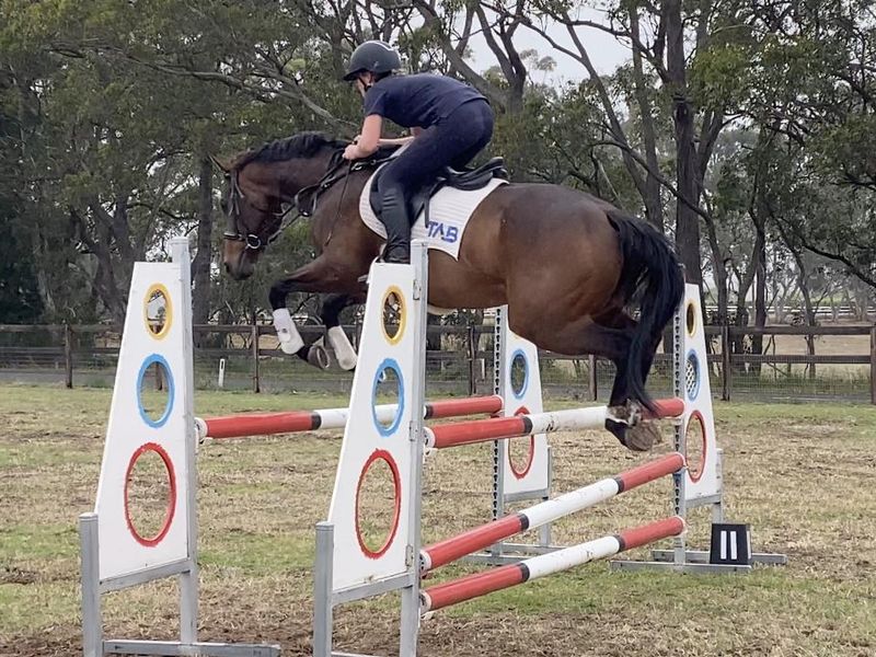 He is confidently competing Eva80 & has gone around one Eva95 and jumped superbly; height does not phase him even though he is green to the level. He has competed up to 1m/1.05 and shows immense potential for higher grades; he is incredibly scopey. He has scored up to 70% and i believe he could consistently score around this, dressage is not my strong suit so i feel this hinders his scores!