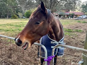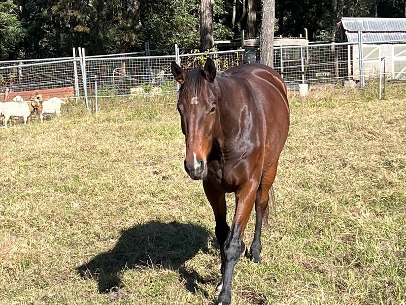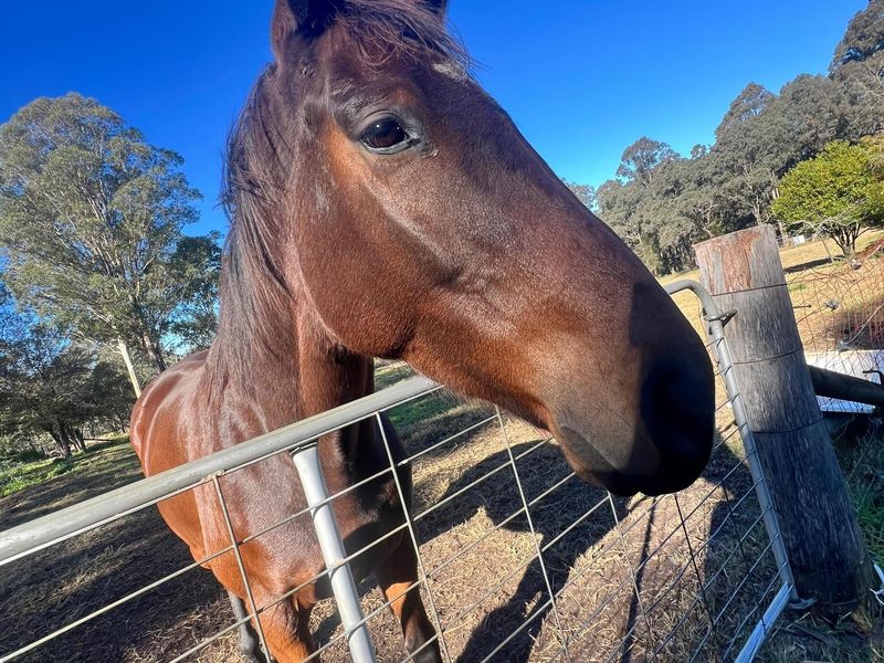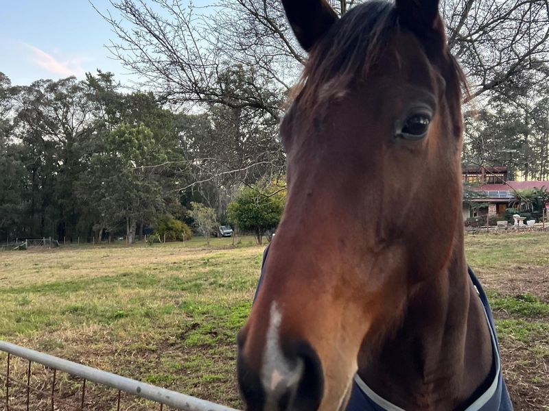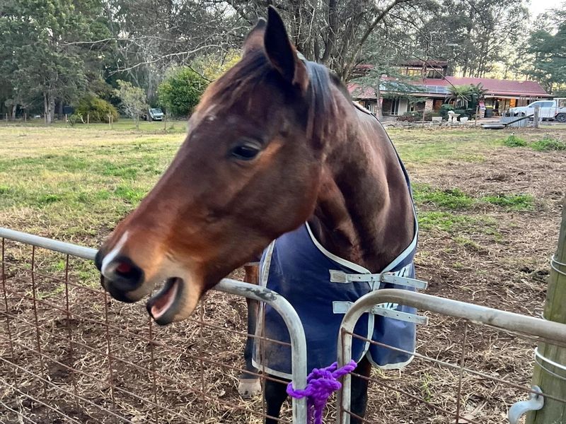 Unbroken but has been saddled and bridled, fine for his legs being touched. Isn't a fan of water on him. Can be food territorial to other horses, but fine to share a paddock with; Is currently paddocked with a young Shetland Stallion.