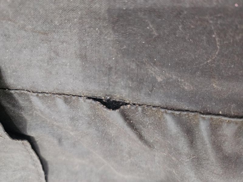Stitching has come apart on seam of pocket (please see last photo), otherwise coat is in very good condition.