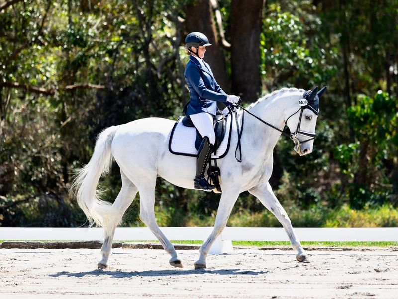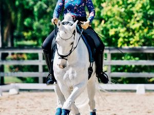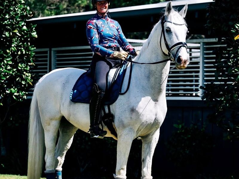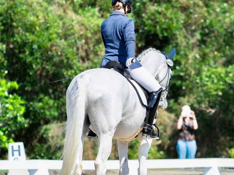 ✅ Dressage foundation – Professionally trained since he was broken in, established at Elementary and competed to Medium level, currently training the Advanced movements.