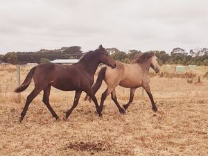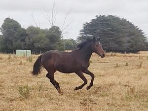 She is a confident and friendly filly, catches you in the paddock and will follow you everywhere. Happy to be paddocked with others or by herself, is also happy to be left alone while her paddock mate gets taken away.