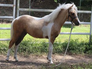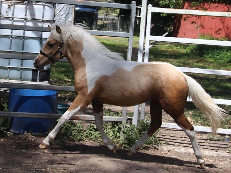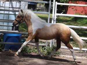 I own her mother who is a beautiful Welsh x Australian palomino pinto pony . She takes after her mother in temperament as well . Clarise is a very gentle soul and is coming along really well. She has such a soft nature and I am always in awe when watching her trot around the round yard admiring her stride and natural self carriage.