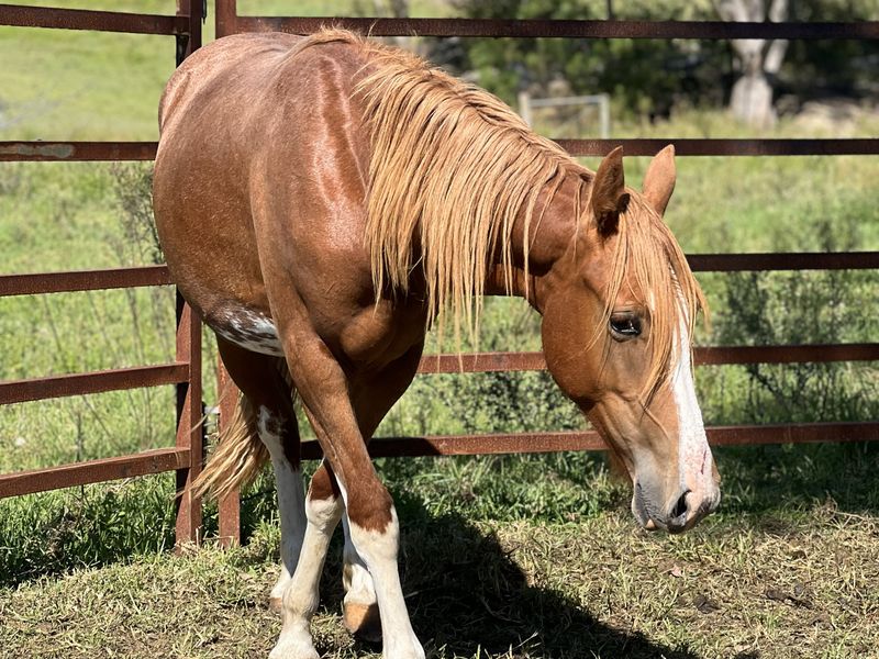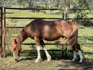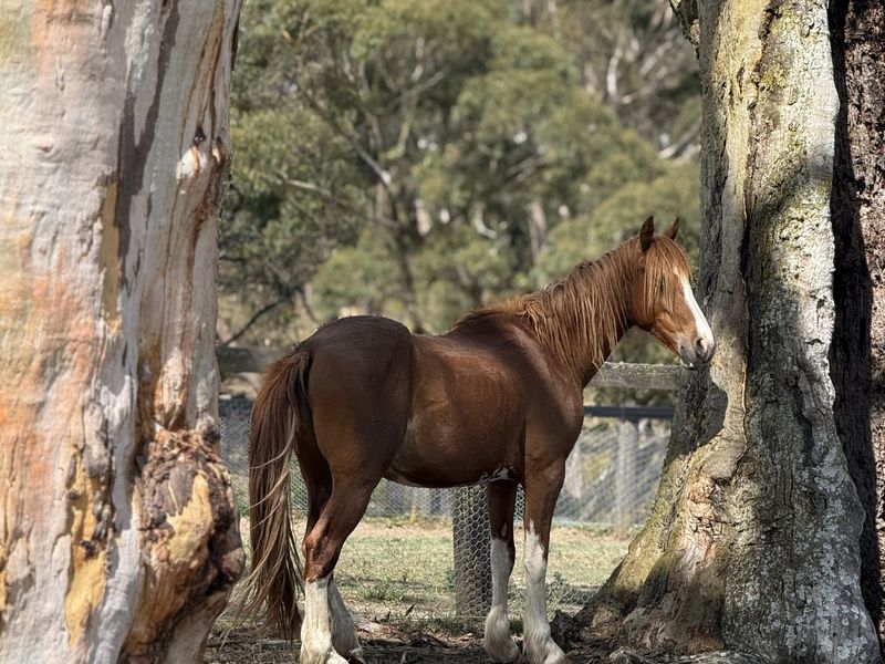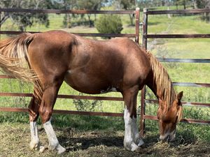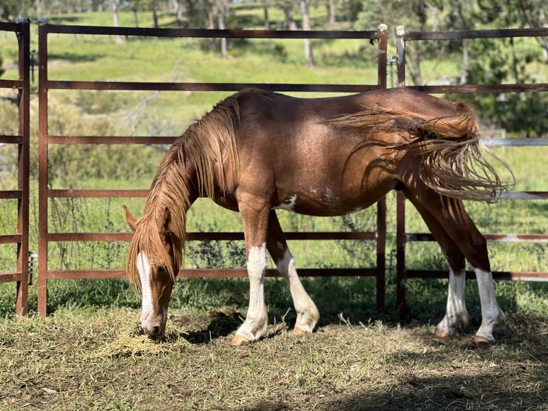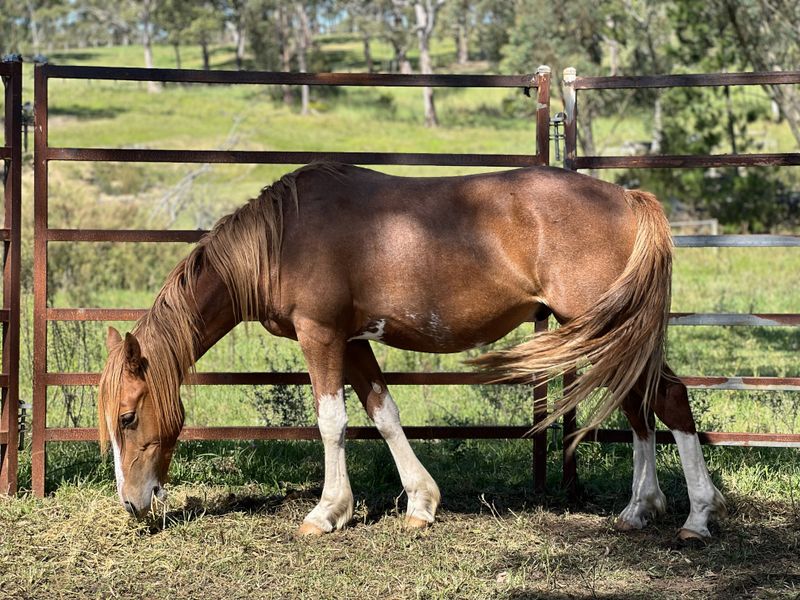 Registrations20/3/2023. Extra blingy roan chestnut. 4 white stockings and wide blaze. Stock/ quarter horse x Daquara Look at me (Welsh D). Dam: 15.2hh and sire 14.2hh. Eligible for part cob registration.