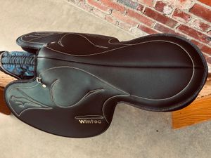 Ready to gallop? The Wintec Exercise Saddle contains the benefits of CAIR to support your horse’s comfort and performance throughout their training. The saddle’s weather-proof, sweat-proof, easy-care materials mean the saddle can be hosed off after each ride and you don’t have to worry about it taking hours to dry – when minutes are money you don’t have time for that! Contains a traditional safety hinged bar.