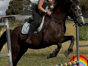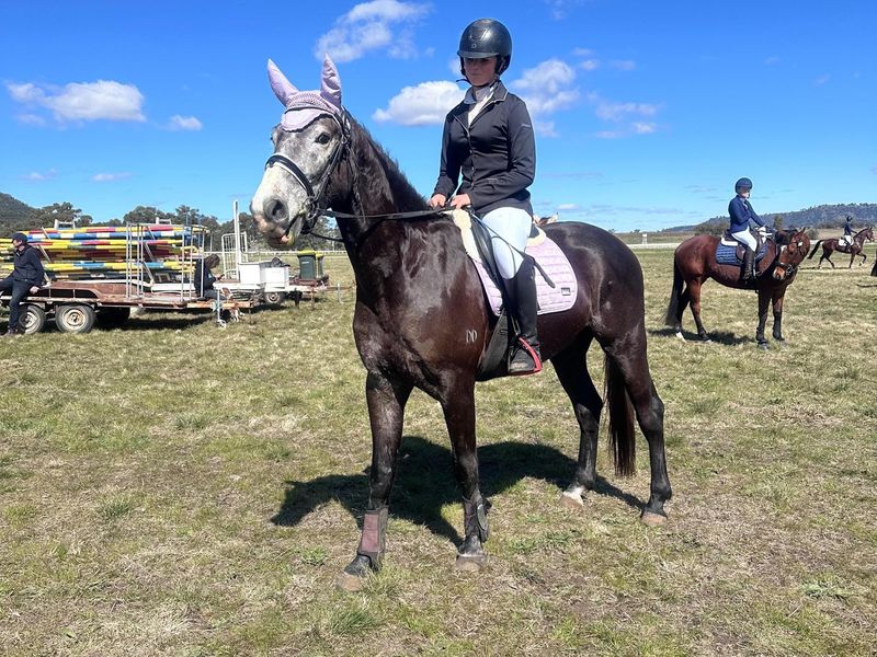 Storm is a grey 3/4 year old warmblood. He is registered AWHA and by Renegade Z. His mum by Wimborne Constable. He was born to jump!