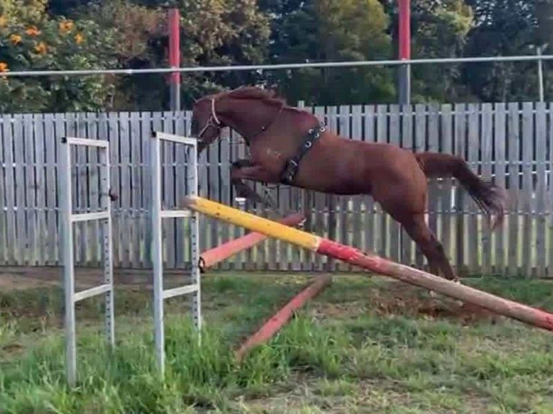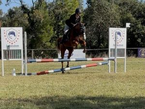 Due to unforseen circumstances Katie is looking for new best friend. Katie was originally started as a project to take through the heights in showjumping, then due to lack of time she was put out for a spell. Since then however she has been in light work, having been out to pony club, jump club, ag shows and dressage lessons. Katie is currently jumping around 60-70 but has been freejumped up to 1m, with time I believe she will make her next partner very happy.