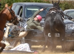 A toddler narrowly missing being crushed when a rider lost control of their horse during the scurry jumping at Dunster Country Fair, Somerset UK ... Equestrian Vaulting Australia Sydney CVI: 25-29 September