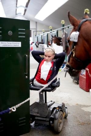 Denmark’s Stinna Kaastrup, pictured here preparing for the Freestyle Grade Ib competition at the FEI European Para-Equestrian Dressage Championships 2011 in Moorsele (BEL), which she went on to win aged just 17. The double bronze and silver Freestyle medallist at the Alltech FEI World Equestrian Games™ 2010 in Kentucky is currently training hard – Denmark has secured a team of four and one individual slot for the London 2012 Paralympic Games. Photo: Liz Gregg/FEI.