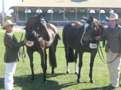 The over 15 hands class was won by Tiffany Green with her lovely mare Celadon Alibi and the 15 hands and under was won by Tina Bridge and her stunning mare, who went on to also win Champion mare, Cee Dee Bracelette (pictured with second placegetter Glen Lee Rivoli Slingshot).