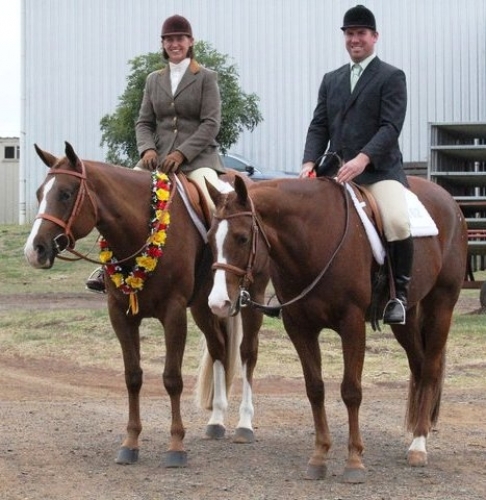 | Ampleur Hot & Hawnie (ridden by Raelen Gilboy and owned by Amelia Leeman) and Suthern Docs Dreamcat (ridden by Phil Henderson and owned by Jo Johnson) after placing 1st and 2nd in the Open Hunter Under Saddle Jackpot |