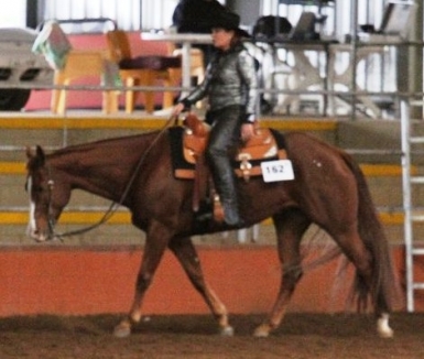 | Jo Ramsay and Jozone Bonnie Angel - getting ready for their winning run in the Senior Horse reining |