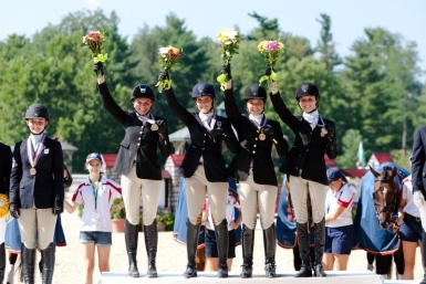 Young Rider Individual Dressage Championship: GOLD - Weltino’s Magic (Brandi Roenick) USA 74.974; SILVER - Rifradin (Monica Houweling) CAN 71.237; BRONZE - VIP (Alexandra Reed) CAN 70.000.