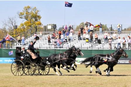Boyd Exell galloping his team around for the victory lap after winning gold in the Driving