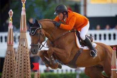 | Two million people connected around the world for the FEI’s #SupportYourNation social media competition during last week’s Furusiyya FEI Nations Cup™ Jumping Final in Barcelona (ESP), where Gerco Schröder and Glock’s London were part of the triumphant Dutch team. (Photo: Arnd Bronkhorst/FEI) |