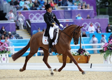 But no-one could have anticipated the spectacular performance from Japan’s Yoshiaki Oiwa and Noonday de Conde. This fabulous 11-year-old French-bred mare was beautifully ridden by her 36-year-old rider who has been training with Dirk Schrade in Germany for the past three years. The softness of Oiwa’s hand and leg-aids, and the quietness of his riding style, produced a test filled with poise, elegance, balance and a little bit of magic to earn a mark of 38.10 which took the individual lead and rocketed Japan up into fifth place in the teams. Asked afterwards what Schrade had said about his pupil’s fantastic performance, Oiwa answered “he said there were a few things I could have done better – it wasn’t good enough he told me!”