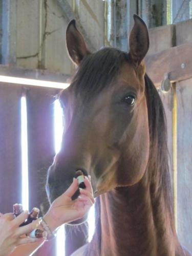 Animal Aromatics involves offering single essential and infused oils for horses to choose what they need according to their own instincts. The aromatic molecules are inhaled or imbibed and can travel throughout the body in seconds.